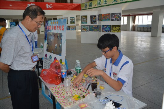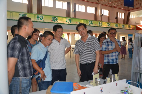 澄海区科协主席林镜泳、区教育局局长王敏参加展评活动,并为获奖学生颁奖。