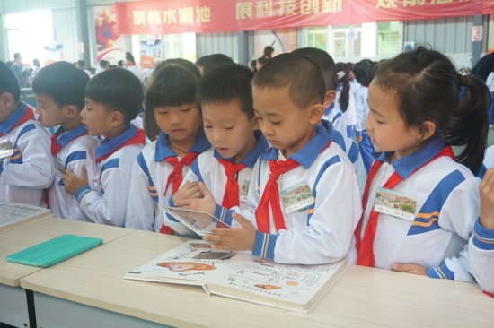“咦,书本里的知识居然活起来了!”原来,同学们正在通过AR技术阅读天文科普读物,平时觉得枯燥,没活力的知识居然在平板中生动地为同学们演示起来。有趣的动画,生动的讲解,使得同学们孜孜不倦地读起来,爱不释手。这或许就是科技的魔力——改变我们的刻板,改变我们的习惯。
