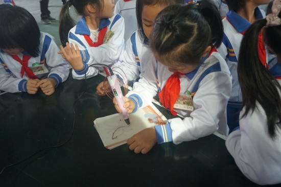 3D打印笔区域,同学们纷纷拿起3D打印笔,化身为神笔马良,将一件件美丽的3D产品呈现在大家面前,有小巧的埃菲尔铁塔,活灵活现的花蝴蝶,时尚大方的眼镜。