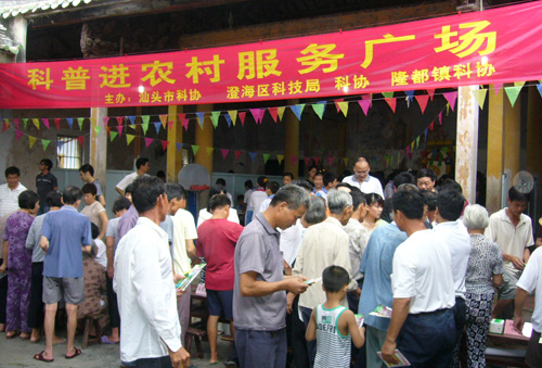 6月11日,汕头市科协、澄海区科协、科技局与隆都镇科协联合在隆都镇镇前沟村举办 “科普进农村”服务广场活动。活动旨在营造科普服务经济发展、提高公民科学素质、科普惠及民生的浓烈氛围,进一步扩大科技进步活动月的群众参与面。