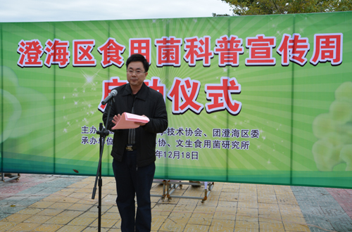 12月18日上午,由汕头市澄海区科协与团澄海区委联合主办的“澄海区食用菌科普宣传周”在莲华镇文生食用菌研究所正式启动。澄海区科协主席林镜泳同志,团澄海区委书记许桂钦同志,汕头职业技术学院教务处主任林旭群及该校学生等参加了本次活动。