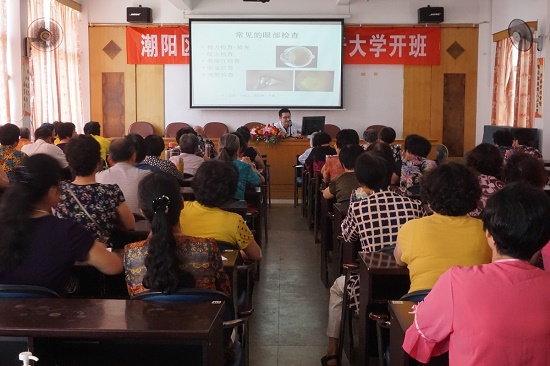 科普大学揭牌仪式后,由汕头大学·香港中文大学联合汕头国际眼科中心专家吴政根医师为学员讲授了“老年人也应拥有精彩‘视’界——白内障、青光眼等老年人常见及多发眼病的科学防治”科普知识,并向老同志提供免费眼健康义诊服务。活动使老年同志受益良多,深受好评。接下来区科普大学将通过知识讲座、现场授课等方式,为老年朋友免费普及疾病预防、营养保健等诸多生活科学知识。