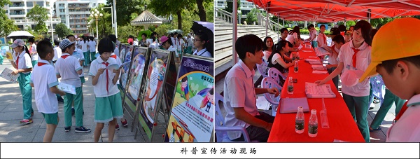 为推进2016年度汕头市潮阳区“科技进步活动月”的深入开展,突出科技惠及民生理念,引导公众共同关注环境卫生、垃圾处理、水资源保护等热点问题。6月21日,由区科协、区城管局、区环保局联合,在潮阳城区影剧院广场举办以“普及科学知识 倡导文明生活”为主题的大型科普宣传活动。市科协主席洪建芬、潮阳区区长林定亮、市科协副调研员曹世宝、区委常委罗俊晖及区科协、区城管局、区环保局等单位领导参加了本次活动。