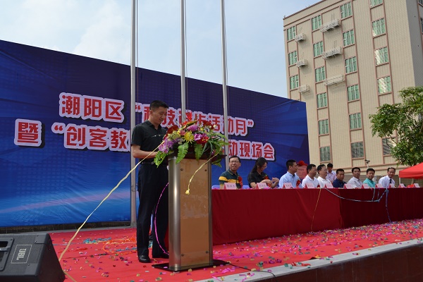 区科协主席郭洪杰参加本次活动,在讲话中指出,区科协致力于转变工作方式,提高科普工作实效。把工作重点转移到搭建服务平台、推动科普工作社会化上来,协助党委和政府制定科普工作规划,进一步浓厚科普工作氛围,促进科普工作方针政策的落实;大力发展科普服务组织、健全科普网络,把提高基层科普能力作为突破口,逐步建立和完善科普工作的长效机制;努力创新科普手段,加强科普网络和信息建设,加强科普资源的开发、科普作品的创作。希望通过“科技进步活动月”及“创客教育进校园”等活动,进一步凝聚共识、整合资源,为创新驱动、潮阳振兴注入新的活力和动力源。