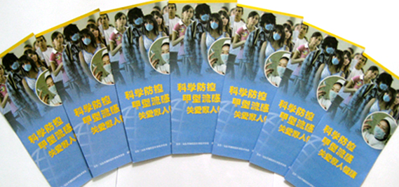 另外,及时向广东省科普信息中心订购《科学防控甲型流感 关爱家人健康》小折页5000份,发送有关单位和公众,介绍预防甲型流感的措施,宣传可防可治的知识,为增强公众健康意识,构建和谐社会尽一份责任。