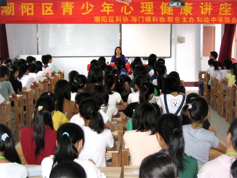 5月27日,汕头市潮阳区科协与海门镇科协联合在海门镇和睦中学举办“青少年心理健康讲座”,受到全校2500多名师生的热烈欢迎。
