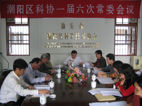 汕头市潮阳区科协一届六次常委会议于2010年1月21日在区科协会议室召开。会议认真学习中国科协七届五次全会精神、传达全市科协主席工作会议精神,回顾总结区科协2009年工作,提出2010年的工作计划。会议审议并同意苏晓生主席向常委会所作的《学习实践科学发展观、拓展科协工作新空间》的工作报告。