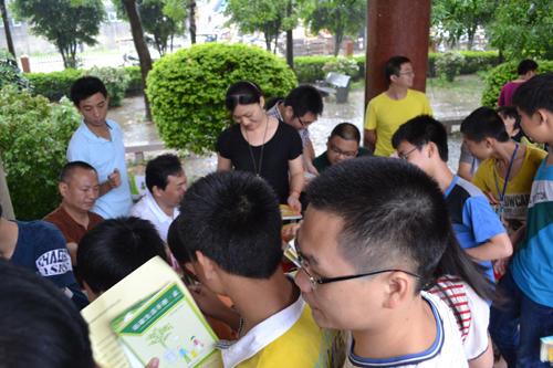 活动现场,时逢中雨连绵不断,倚仗公园遮雨廊道临时布设的活动场景井然有序。高挂的“倡导环保健康生活,建设美丽幸福家园”、“思前食后,厉行节约,减少你的耗粮足迹”横幅红布联迎着风雨飘荡。风雨阻挡不了人们酷爱科普知识之期望,数百村民、学生及各主办单位的有关领导、干部职工热情参与。有的撑着雨伞、有的穿着雨衣,相继簇拥着冒雨前来参加集市活动。