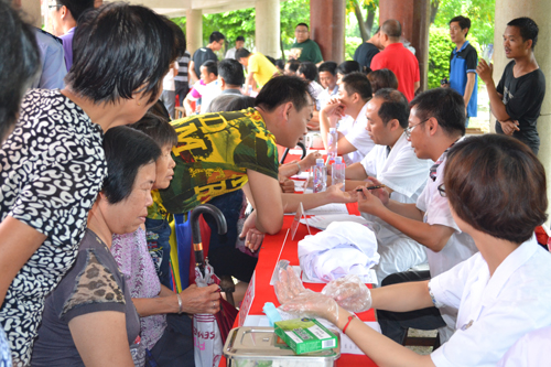 在“环保科普图片展览”区段,许多群众细心地观看每个图版,了解其内容与涵义;在咨询服务区段,大家争先索取各种环保科普宣传资料,3000多份(册)环保知识资料及各种环保宣传日用品,很快被取空;在义医义诊区段,许多中老年村民争相问诊,区人民医院、医学会的医务工作者,总是热情耐心地给予把脉、量血压、询问病情,开药方,免费送药。