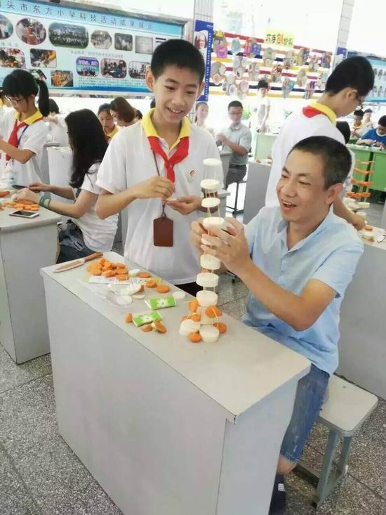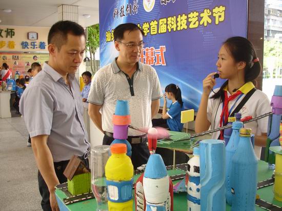 5月30日,主题为“科技创新 东方逐梦”的东方小学首届科技艺术节在校园拉开帷幕。这是一场别开生面的校园科技艺术活动。金平区科协刘礼深主席,区教育局蔡少文副局长等嘉宾莅校观摩指导,对学校近年来开展科技活动取得的成果给予高度的评价。学校风雨运动场展出的学生的科技手抄报、科幻画、纸盘艺术创作展现了学生丰富的想象力。各项科技活动有条不紊的进行。