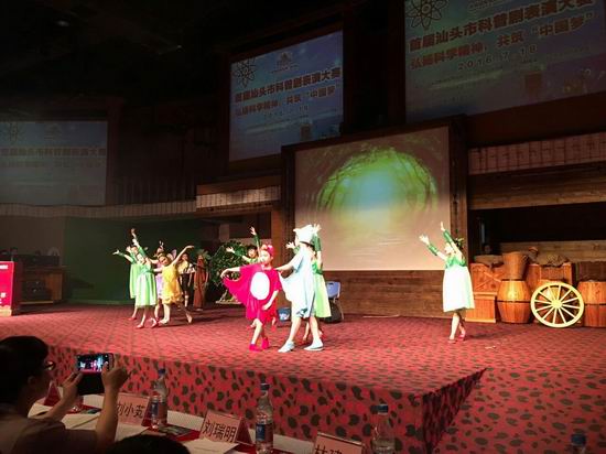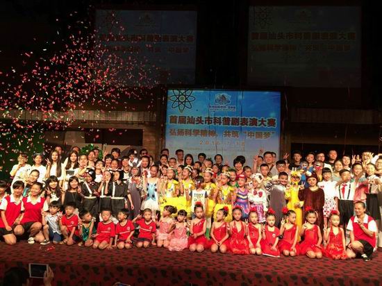 7月18日下午2点30分,由汕头市科学技术协会、汕头市科学技术局、汕头市教育局、汕头市文学艺术界联合会主办的汕头市首届科普剧表演大赛在方特蓝水星主题乐园的奇幻摄影棚拉开帷幕。此次比赛主题是弘扬科学精神,共筑“中国梦”。旨在倡导“节约资源能源,保护生态环境、保障安全健康、促进创新创造”理念。通过科普剧的艺术表现形式,传播科学知识、科学思想和科学方法,弘扬科学精神,揭露伪科学、反科学现象,诠释环境保护、科学生活、安全健康等日常工作生活中的科学问题,传递科学正能量,在全社会营造崇尚科学文明、创新创造的良好氛围。大赛最终评选出一、二、三等奖共6个和优秀组织奖3个,获奖作品将推荐参加第三届广东省科普剧大赛。汕头市金平区共获得三个奖项,占全市三分之一。
