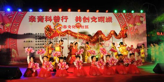 在农历新年来临之际,汕头市金平科协联合汕头市金平区团委于1月12日晚,在汕头金平区广厦街道金禧社区举办“亲青科普行 共创文明城”—— 迎新春文化进社区活动,以市民群众喜闻乐见的文明情景短剧、科普剧、科普创文知识问答和创文主题歌舞表演等形式,为社区的居民群众送上一场丰富的文化盛宴。汕头市金平区林锡波区长、汕头市金平区委陈斌副书记、蔡英姿常委、汕头市市科协曹世宝副调研员、汕头市金平区人大谢少维副主任、汕头市金平区政协刘彦彧副主席等市、区领导出席活动。