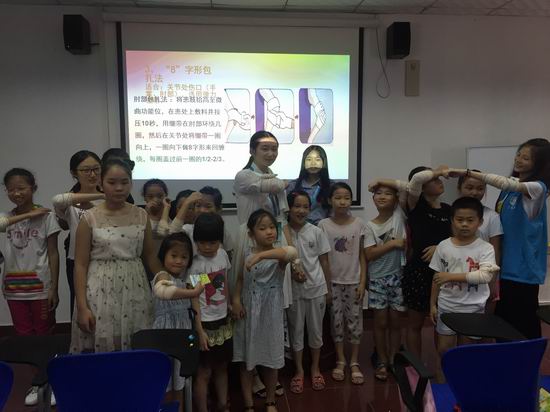 课程采用PPT知识讲解、视频教学、实务操作、游戏互动、有奖问答等形式传授医学常识,学习应急技能,专业严谨之余又不失趣味灵动,青少年们纷纷表示愿意“牺牲”假期睡懒觉的时间来参加这样有趣的课程,让自己的假期生活过得不一样。暑期文化营课程涵盖急救包扎、安全用药、生活小百科、性教育与防性侵,预防艾滋病,体育课,折纸课,绘画课,手语课等实用技能课,青少年戏剧体验、游戏、武术等室外体验课,通过连续的学习实践过程,循序渐进地掌握日常所需的医学知识和实用技能,增强青少年的动手能力和面对生活中突发状况的应变能力,并通过团队任务式协作和结果分享,鼓励青少年自我察觉和自我挑战,同时学会接纳与赠予,培养共享意识,养成文明习惯。