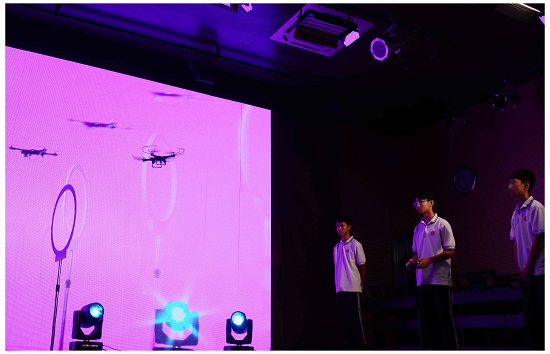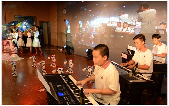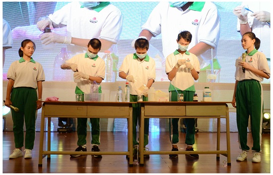致辞结束,现场又给意犹未尽的学生们带来生动有趣的科普剧表演、无人机表演、脑科学VR体验、科普灯谜互动和火山爆发科学实验表演等精彩节目,各个环节设计紧扣社会焦点和热点科学内容。最后一个科技与艺术共舞的节目,融合钢琴弹奏、舞蹈表演和机器人动作为“金平科普汇演”划上完美的句号。