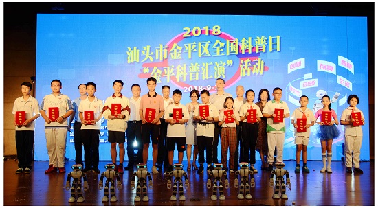 9月22日下午,2018年汕头市金平区全国科普日“金平科普汇演”活动在汕头市聿怀中学海滨校区有汉大礼堂举行。活动由金平区科协和教育局联合主办,以“创新引领时代,智慧点亮生活”为主题,吸引全区40多家单位近1000人参加。