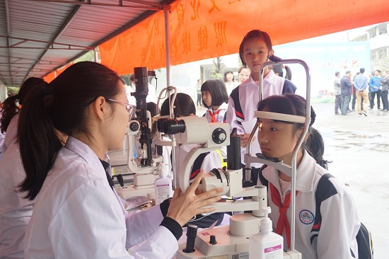 在卫生区域,由科协、鮀江街道、卫生健康局、应急管理局和农业农村水务局等单位设立的咨询服务区也是人头攒动。来自汕头国际眼科中心的医生团队正为学生进行视力检查,还带来了一场眼健康科普讲座;社区卫生服务中心的医生向大家进行急救知识的演示,并让学生们进行体验。各个咨询服务点的工作人员把健康教育、森林防火、应急防震减灾知识、水资源保护、科学普及、科普灯谜读本、法律法规等方面的学习宣传资料发放到师生手中。