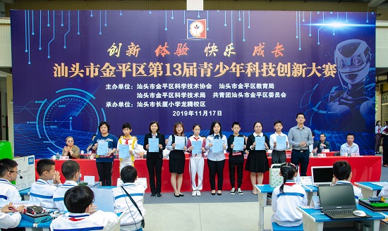 2019年11月17日,汕头市金平区各中小学校34个代表队的青少年选手、科技辅导员、观摩师生和汕头大学的专家评委共500多人齐聚在汕头市长厦学校龙腾校区,共赴科技创新交流盛宴。此次金平区第13届青少年科技大赛以“创新、体验、快乐、成长”为主题,由金平区科协牵头组织,联合区教育局、区科技局、团区委共同举办。大赛分为创新作品、科技实践、科幻画和科技辅导员创新项目四大内容,面向全区中小学老师和学生共征集到创新项目135件,科技实践4件,少儿科幻画632件,科技辅导员项目3件。