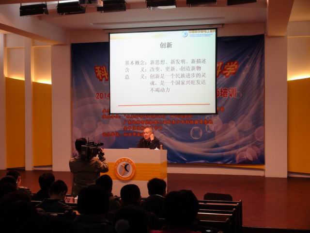 金能强教授是中国科学院电工研究所研究员,博士生导师,中国电工技术学会直线电机专业委员会副主任,中国科协青少年科技创新大赛专家评委,对科技创新有较深的体验和感悟。培训课上,金教授就创新社会学、中国青少年科技创新活动、如何创新;科学精神、科学研究的三个过程、选题;青少年科技创新大赛,包括辅导教师的作用,获奖项目分析,参赛准备等方面进行培训,并和教师们面对面进行交流,使教师们得到很好的启迪。