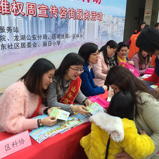 为庆祝“国际劳动妇女节”,近日,汕头市龙湖区科协联合区妇联、区妇女维权站、区法院、区检察院等十几个单位联合举办“三八”维权及科普宣传系列活动。