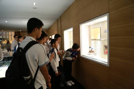 学生们驻足观看精美绝伦的展览品