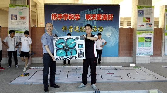 蓬鸥中学非毕业班800余名师生及刚刚参加中考的初三级社团成员参加了本次科普活动。活动现场热闹有序,有些同学驻足观看图片展,写写记记;有些同学向社团成员请教交流,并亲自动手进行机器人的编程与操作,体验与收获科学的乐趣。该校家长委员会的一位家长代表专程来到活动现场,热心地向学校赠送了一批航拍飞机,用实际行动支持学校的科学教育,为下来学校航模航拍社团的成立提供了器材支持。