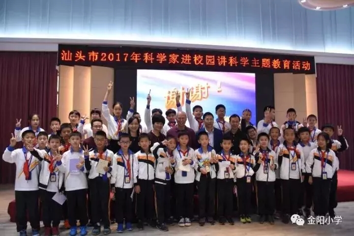 探索未知乐无穷 ,薪火相传科学梦。为创新科技教育方式,加强科教联合,全面提升学生的科学素养,培养学生的科学精神和探究精神,2017年11月16日,汕头市“科学家进校园讲科学”主题教育活动在金阳小学举行。活动上,中科院科学家孙万儒教授从讲述列文虎克发明显微镜的故事,到通过显微镜看到的微观世界;从细菌的种类、形态、生长环境,到如何利用细菌和防御细菌的侵袭等例子,以形象的幻灯片配合生动的语言,将复杂的理论讲解得浅显易懂,深深吸引了充满好奇心的孩子。