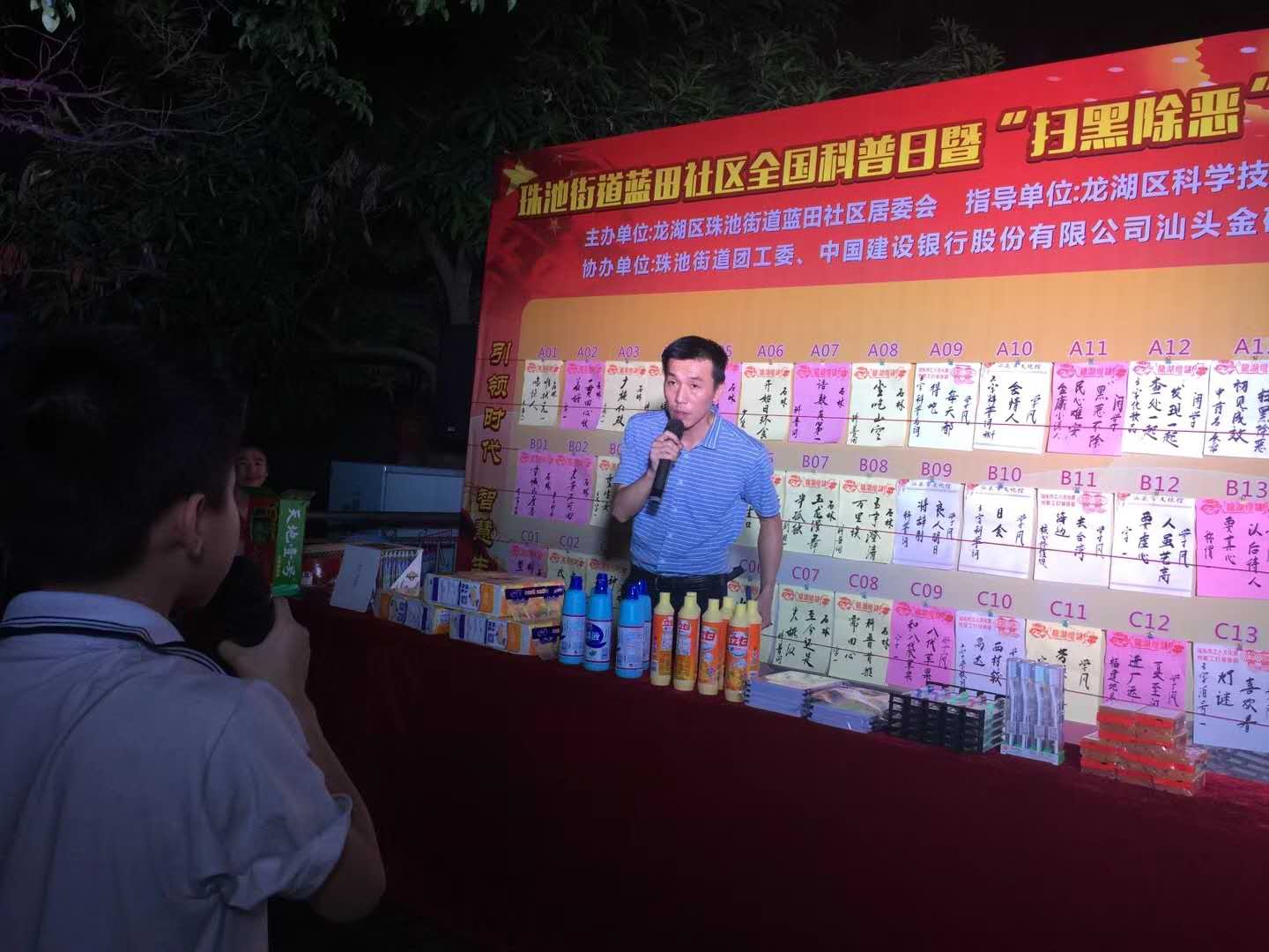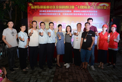 为让社区群众更直观、深入地了解科学知识,并提高他们的扫黑除恶相关知识知晓率,14日晚上,由龙湖区科协、蓝田社区居委会、珠池街道团工委、建行汕头金砂支行联合举办了这场全国科普日暨“扫黑除恶”灯谜竞猜活动,区科协等有关部门领导参加了活动。活动得到了辖区群众和灯谜爱好者的欢迎,现场气氛活跃,不少群众纷纷举手踊跃参与了竞猜活动。居委会在现场还放置了扫黑除恶宣传材料供来往群众领取。