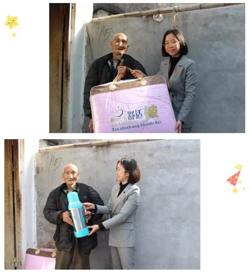提着油、带着米,还有专门去为老人家采购的热水瓶、饮用杯、棉被等等,区科协党支部的党员们兴冲冲地穿过乡村的小道,与当地居委书记及有关负责人等叩开了陈顺发老人的家门,送上了慰问品和新春的祝福。
