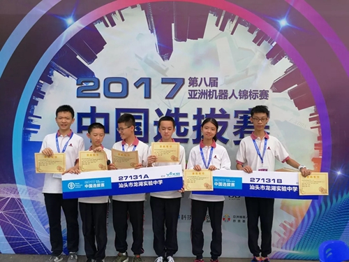 2017年,汕头市龙湖实验中学又获省机器人综合技能冠、亚军,连续五届获得广东省青少年机器人竞赛综合技能冠军,因而被授予2017年“全国优秀学校”光荣称号,这是广东省唯一获得此殊荣的学校。