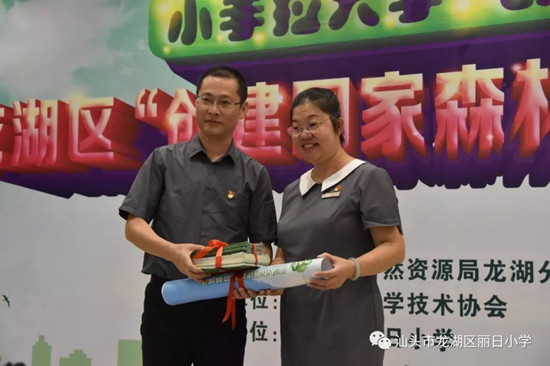 在科普讲座开始之前,市自然资源局龙湖分局与丽日小学还举办了一个简短的赠书仪式,该局将创建国家森林城市的有关宣传小册子赠送学校,希望以此提高学校师生对“创森”工作的知晓度和参与率。