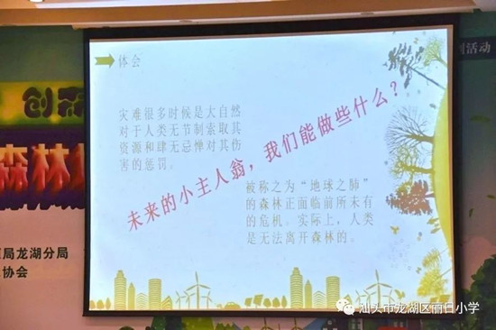 汕头市龙湖区丽日小学举办“小手拉大手,创森进校园”科普讲座
