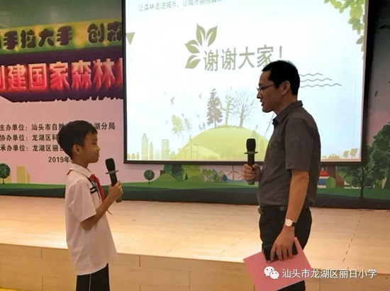 局长当“老师”,来到学校给孩子们讲课,可是新鲜事!孩子们听得兴致勃勃,笑声不断。据悉,这是龙湖区2019年“创建国家森林城市”的主题活动,由此,拉开了全区以“创建国家森林城市,携手共建绿色汕头”为主题,开展“小手拉大手,创森进校园”系列科普活动的序幕。