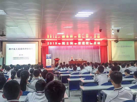 在林百欣科技中专、丹霞小学和锦泰小学,中国气象局、国家卫星气象中心研究员夏青教授带来了《导航卫星就在你身边》《航天与气象小故事》等科普讲座。夏教授向学生们讲解了导航卫星的源头与发展、全球四大导航卫星系统、卫星导航系统四大关键技术、导航卫星四大应用。为让学生们对卫星有更直观的了解,还特意带来了一个等比例缩小20倍的风云二号的模型,大大开阔了学生们的眼界。