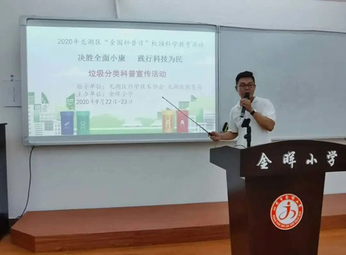 为深入贯彻习近平新时代中国特色社会主义思想,贯彻落实省、市有关精神,弘扬科学精神、普及科学知识,营造讲科学、爱科学、学科学、用科学的良好氛围,金晖小学根据上级有关部署,于9月22日—9月23日举办2020年龙湖区全国科普日主题系列活动金晖小学垃圾分类科普讲座和图片展等宣传活动。