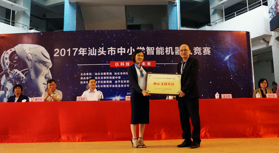 市教育局副局长王溅波、市科学技术协会副主席洪祥武以及金平区教育局、科协等领导出席了活动现场,为获奖选手、优秀指导教师颁奖,并对大力支持本次竞赛汕头市聿怀初级中学和广东乐博士教育装备科技有限公司颁发牌匾以示感谢。