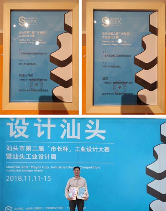 邦宝BEST.A6编程机器人荣获汕头市第二届“市长杯”工业设计大赛金奖