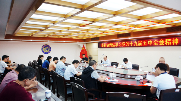 会议强调,要提高政治站位,把学习宣传贯彻党的十九届五中全会精神作为当前的头等大事和首要政治任务,深刻认识党的十九届五中全会重大意义,深入领会五中全会的精神实质和丰富内涵,与习近平总书记出席深圳经济特区建立40周年庆祝大会和视察广东重要讲话、重要指示精神以及习近平总书记在科学家座谈会上的重要讲话精神紧密结合,一体学习领会,整体贯彻落实。要发挥桥梁纽带作用,带领广大科技工作者学深悟透五中全会精神,切实把思想和行动统一到习近平总书记重要讲话精神和党中央的决策部署上来。
