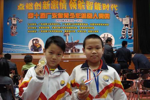 4月23-25日,由广东省科协主办的第十届广东省青少年机器人竞赛在东莞中学初中部举行。来自全省13个地级市代表团的218支代表队800多名师生参加机器人创意、基本技能、FLL、VEX和足球等五项竞赛,其中基本技能比赛、创意比赛分别以“世博志愿者”、“群星璀璨世博会—创建美好的城市生活”为主题,展现2010年上海世博会盛况。通过公平、公正、认真、准确地选拔,竞赛共评出一等奖49项,二等奖66项,三等奖103项。其中,15 支冠军队将代表我省参加今年7月在北京举办的第十届中国青少年机器人竞赛。