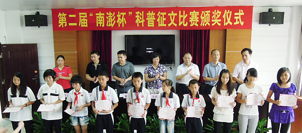 为认真贯彻《科普法》和实施《全民科学素质行动计划纲要》,进一步推进汕头市南澳县“广东海洋综合开发试验县”建设和县政府提出的“推进海洋科普基地建设”的意见,切实做好“广东省科技进步活动月”工作,6月25日,汕头市南澳县政府、县科协等在岛内举办了第二届“南澎杯”科普征文比赛颁奖仪式暨惠农服务站揭牌和科普知识进校园活动。