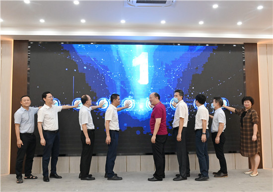 陈严和有关部门负责同志共同为被授予2021年汕头市企业科协、汕头市科普基地的12个单位授牌。