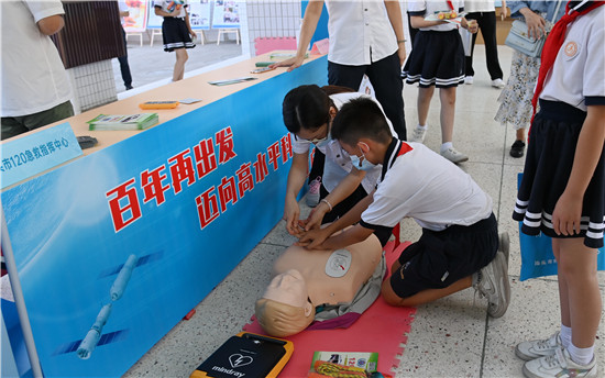 在疫情防控群众性科普活动现场,市120急救指挥中心、市预防医学会、爱尔眼科医院的医护工作者为观众进行急救技能演示培训,宣传疫情防控、健康生活等科普知识,开展青少年近视验光等义医义诊。