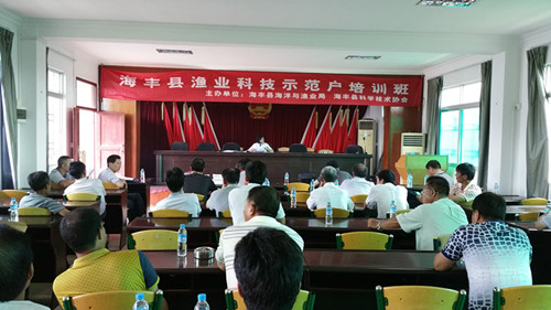 根据2015年海丰县科技进步活动月工作安排,为进一步提高海丰县渔业科技示范户的养殖技术水平,确保本年度渔业科技入户工程实施取得实效,6月3日上午,汕尾市海丰县科协、县海洋与渔业局,在大湖镇会议室举办渔业科技示范户培训班。该镇全体渔业示范户、部分带动户等50余人参加了技术培训。