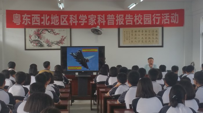 活动邀请中国科学院老科学家科普演讲团成员、原空军指挥学院作战指挥系情报外军教研室教授,研究生导师陈洪教授主讲,以“军用飞机与现代空中作战”为主题,先后在海丰县的后门中学、可塘中学、公平中学等3所学校举办校园科普报告活动,演讲的内容涵盖现代空中作战领域,参加的师生达600多人次,发出调查问卷200多份。陈洪教授严谨务实的科学精神和精彩易懂的演讲、直观有趣的演示以及各个场面热烈互动的气氛。每场科普报告结束时,师生们都报以热烈的掌声感谢专家为他们送上一次丰富的科普盛宴。