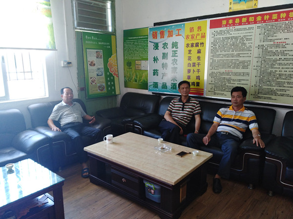 图为:在新和金针菜协会与协会负责人交流