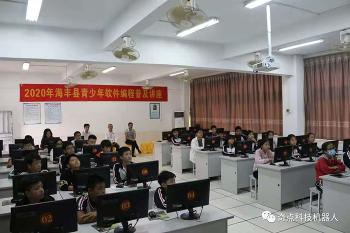 为了大力推动海丰县青少年软件编程知识的普及,使学生掌握软件编程的基本知识和技能,培养学生的科学素养和科技创新能力, 11月10日下午,汕尾市海丰县科学技术协会牵头组织海丰县实验中学,委托汕尾奇点科技授课的青少年软件编程试点活动正式举行。