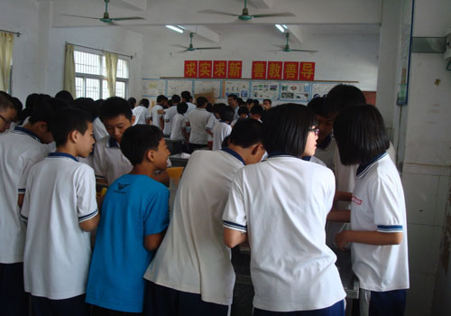 活动现场开展了围绕人体必需的六种营养素的小实验。其中,“精米和糙米实验”以显而易见的实验结果揭示了“面吃粗,米吃糙”的科学道理;“生吃还是熟吃蔬菜实验”通过动手操作,使学生们懂得了维生素C既不像想象的那么怕热,又不能高温久煮,倡导了“吃清淡且快速烹调的熟蔬菜,加上部分清爽脆嫩的生蔬菜,再配以少油烹调的肉类。”的科学饮食方法;而“鲜黄瓜的实验”则澄清了长期以来“食物相克”带给人们的困扰和纠结,弘扬了“具体问题具体分析,不人云亦云”的科学精神。同时,还开展了科普大篷车车载展品、科普展板展示、播放科普宣传片和科普资料发放等活动。本次活动共展出车载展品8件,展出“食品安全与健康”、“节能减排,从我做起”、“卫生与健康”、“科学运动,减少疾病”等内容的科普展板40多张,播放食品安全教育短片——《安安带你看食品安全》,发放科普宣传资料3000多份,有1000多名学生接受了科普教育。