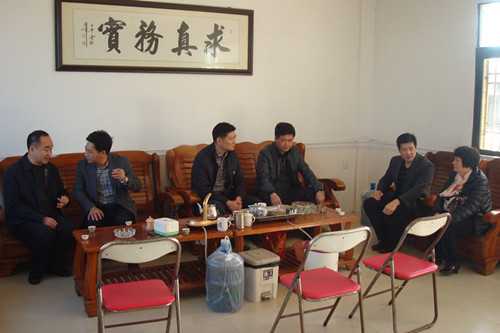 图为:与挂驻村委干部共商新年度工作