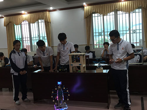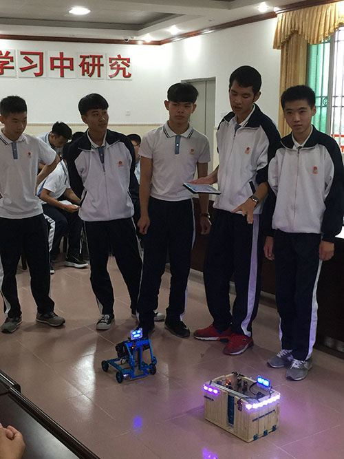 ▲陆河中学同学作品:蓝牙机器人和自动大门