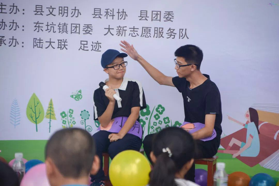 继河口镇麦湖村航模展示活动结束后。近日,陆河县科协再次组织陆河大学生联合会、足迹调研指导中心、大新志愿服务队以及其他热爱公益志愿者们携手共同举办暑假关爱留守儿童公益活动之情景剧活动在东坑镇大新村顺利举行。