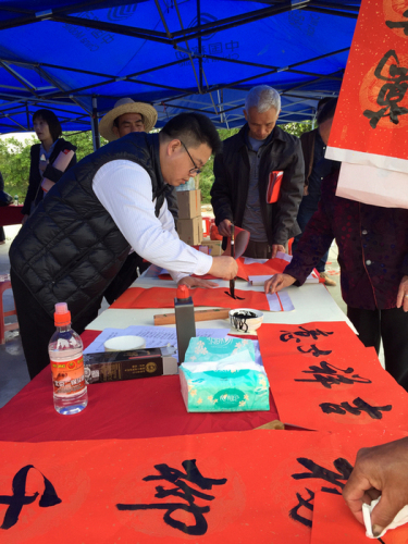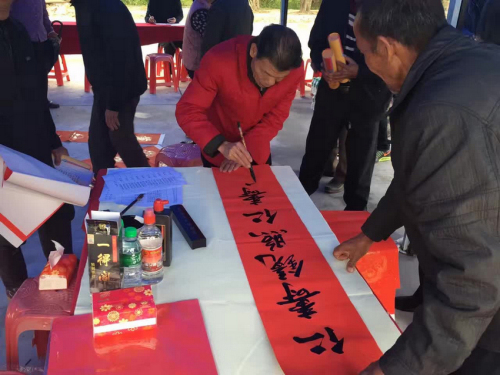 在现场,活动组织的书法家们挥毫泼墨,不辞辛苦,从早晨一直创作到中午,用多种字体书写春联近200幅赠予村民;市第二人民医院(逸辉基金医院)的卫生医护人员为村民提供免费医务咨询和义诊,服务近200人;市科协为村民发放了《公众日常科技知识读本》和《新时期农村基层工作科技知识手册》等书籍400本和保健品一批。此次文化科技卫生集中服务活动,深受村民欢迎。为推动农村精神文明建设,提高农民科学文化素质、健康素质,建设美丽宜居乡村提供了强大的精神力量,也为下一步精准扶贫和创文工作的顺利推进打下了良好的群众基础。